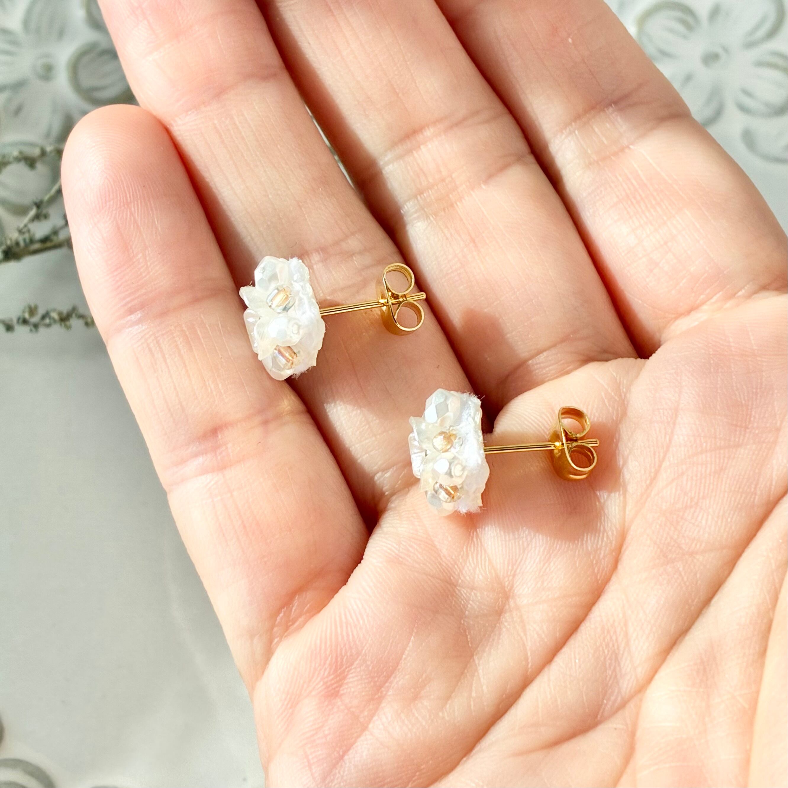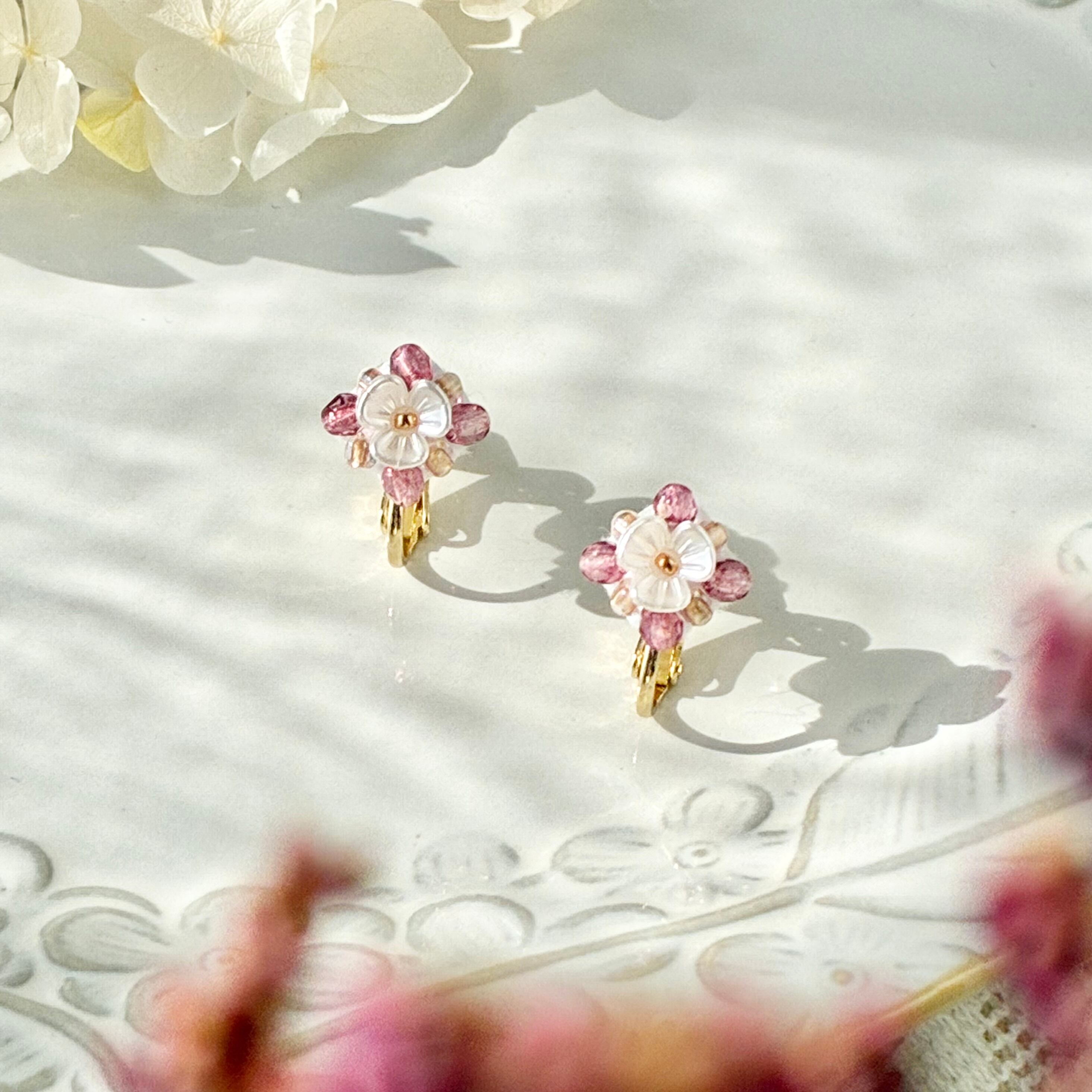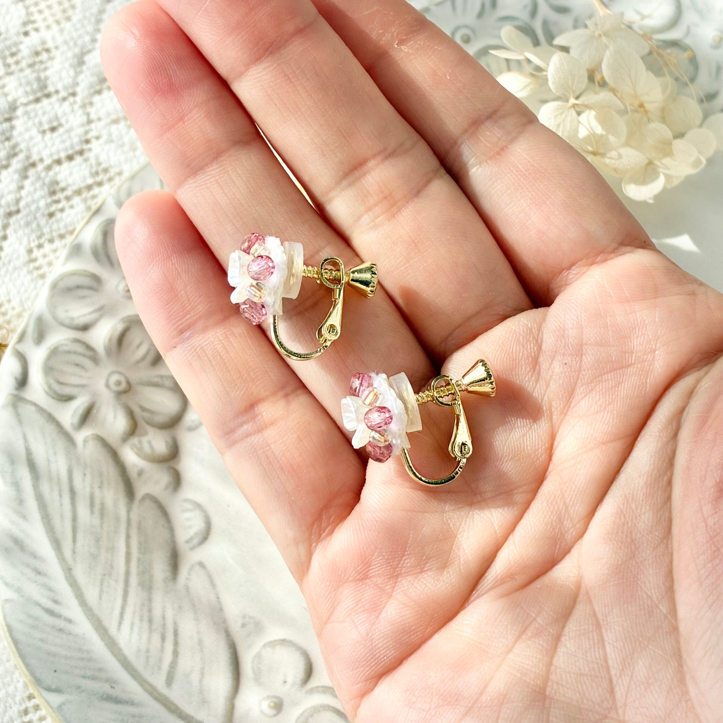 春の新作〜つぼみ花(ダスティローズ)のピアス、イヤリングです!